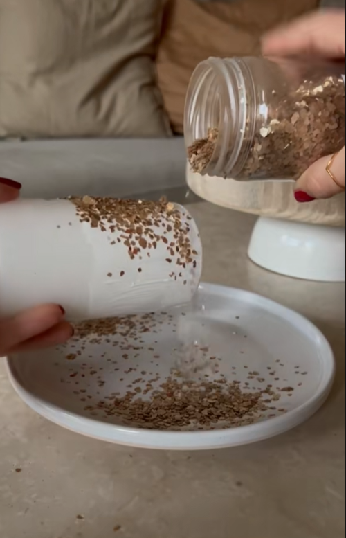 Je begint met twee basics: een houten dienblad en een simpel wit schaaltje. Draai het schaaltje om en lijm het dienblad er stevig bovenop. Zo ontstaat een kleine verhoging, een soort sokkel, die meteen een luxe uitstraling geeft en ideaal is om op te stylen. Het oogt alsof het zo uit een woonwinkel komt, maar dan voor een fractie van de prijs.