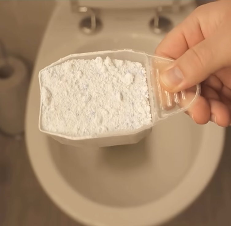Het is echt simpel: spoel de wc eerst één keer door zodat de binnenkant vochtig is. Strooi daarna ongeveer een halve kop waspoeder in de pot.