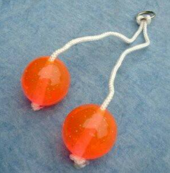 - twee bollen werden met een koord en een koppelstukje aan elkaar gezet