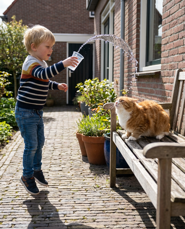 Niemand was blij dat de kat nat werd, maar tussen de buren liep het goed af. Dit voorval laat zien hoe belangrijk het is om vroeg respect voor dieren bij te brengen—en hoe snel emoties kunnen oplaaien als een huisdier betrokken is. Hopelijk heeft de jongen er iets van geleerd waar hij en zijn omgeving later wat aan hebben.
