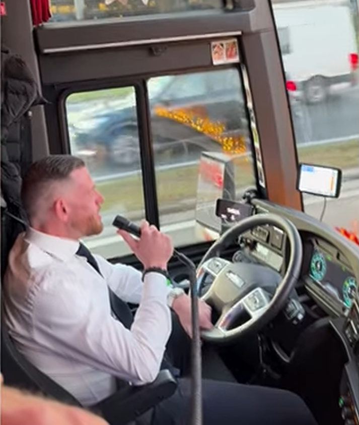 Volgens hem ontstond het moment volledig spontaan. “Passagiers wisten al dat ik graag zing. In een file riep iemand: ‘Toe dan, laat eens wat horen.’ Ik dacht: mooi moment om de sfeer wat op te krikken.”